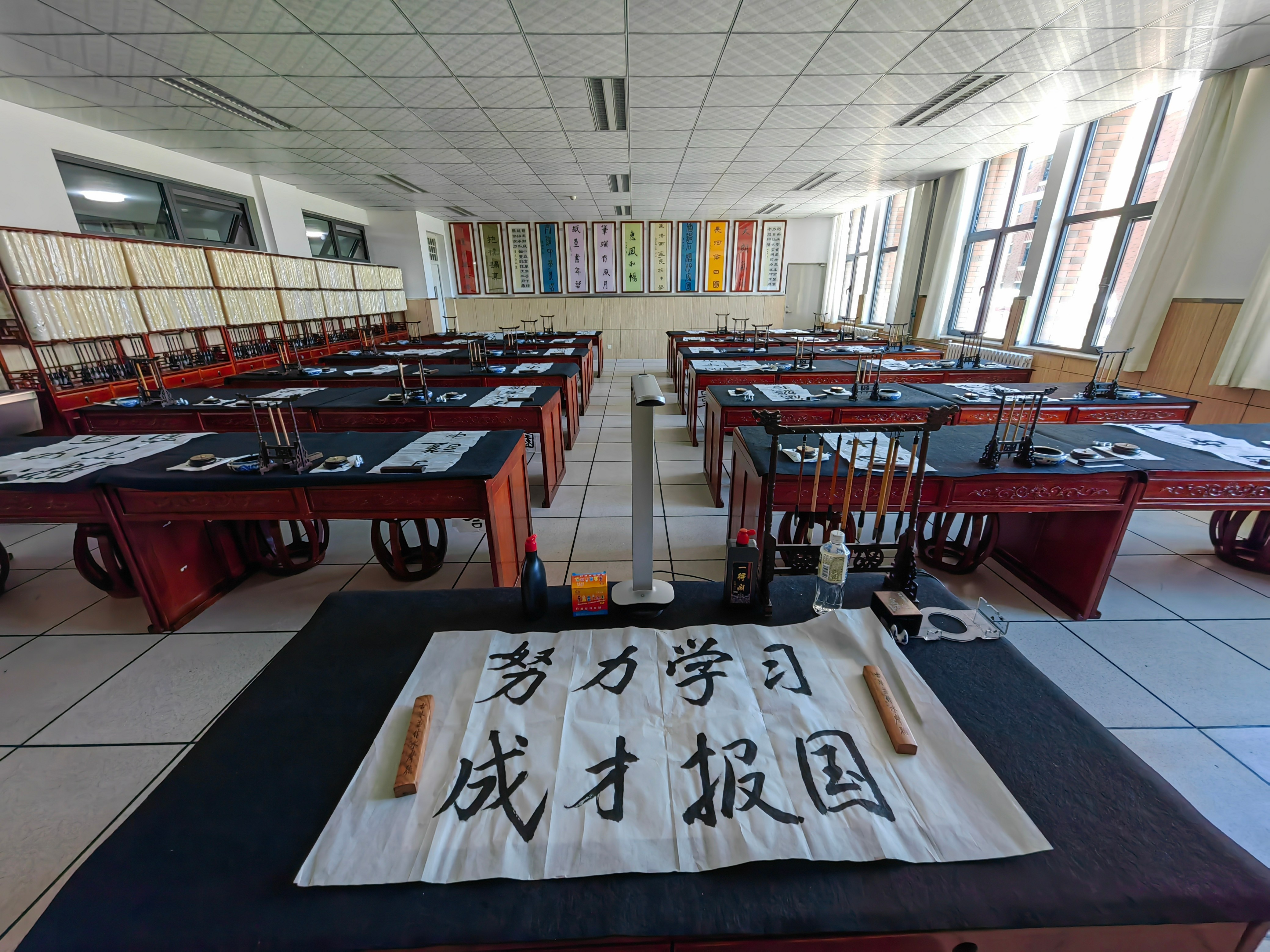 果洛西宁民族中学的一间书法教室内,学生们写下自己的志向。(摄影:冯济东)