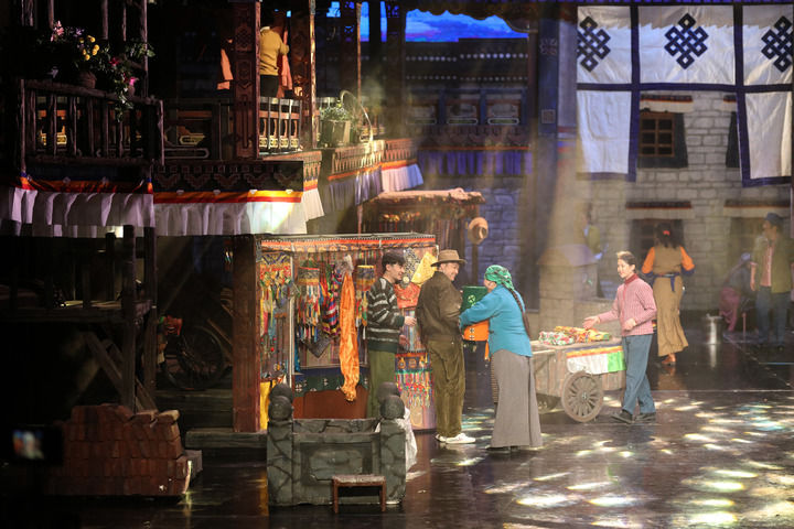 2022年3月23日,话剧《八廓街北院》在西藏自治区藏戏演艺中心上演。该剧由西藏自治区话剧团创作演出,以拉萨八廓街为背景,展现了一座多民族聚居院落的邻里深情。新华社记者 姜帆 摄